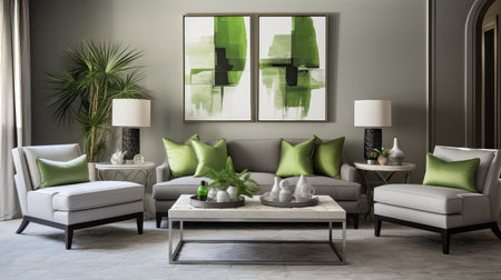 A collection of green plant textures and patterns arranged artistically, highlighting the rich diversity of nature's hues and providing ample copy space for design purposes, AI generated