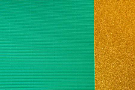 Green corrugated cardboard background with gold glitter space.