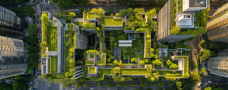 Green initiatives such as rooftop gardens, vertical farms, and eco-friendly buildings promoting sustainability and environmental stewardship