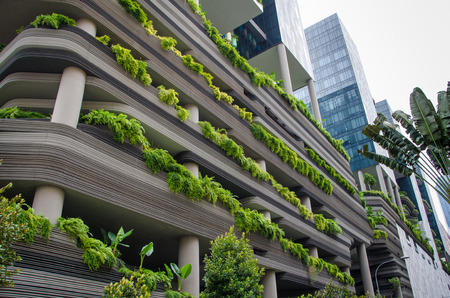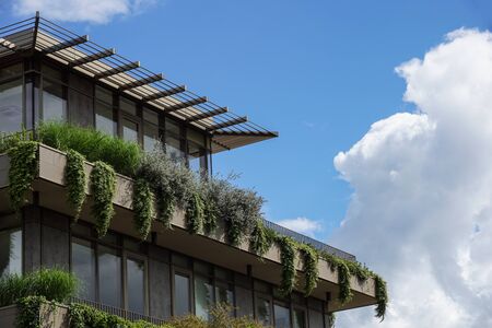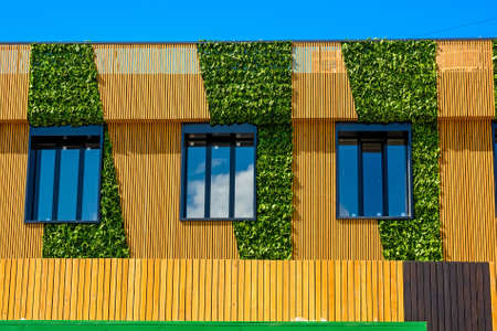 Green facade, vertical garden in architecture. Ecological building.