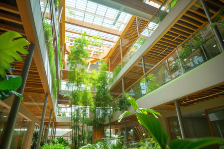 Atrium Filled With Plants in Modern Office Building, Incorporate sustainable design elements into your building to promote environmental responsibility