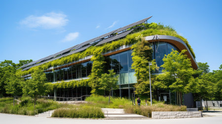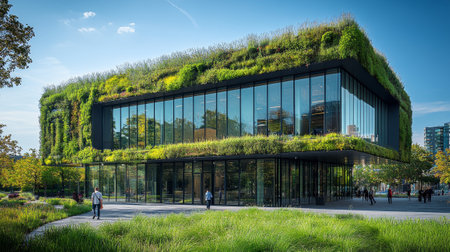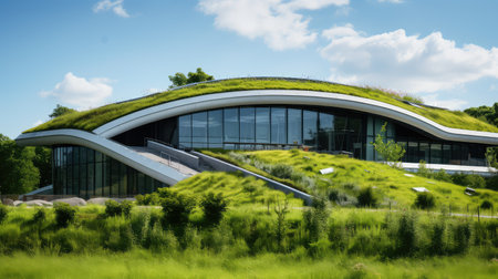 Eco-Friendly Office Building with Green Roof in Urban Landscape