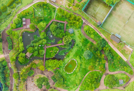 Top view of the park with paths top view