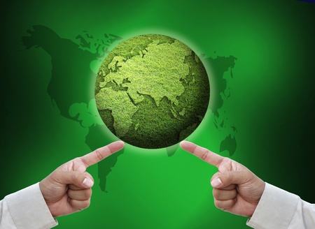 ecological map of the world in green grass isolated on white background
