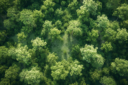 Top down view of green trees in early spring