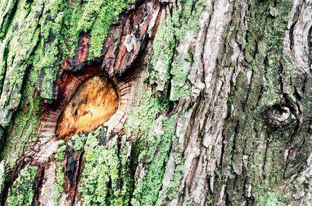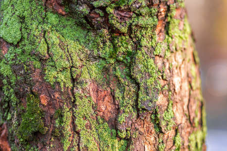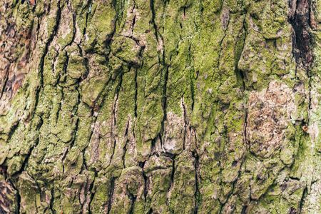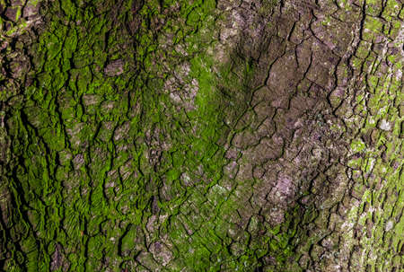 Old tree bark green brown texture on close-up