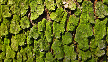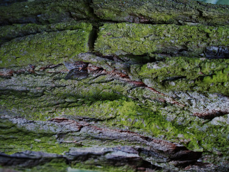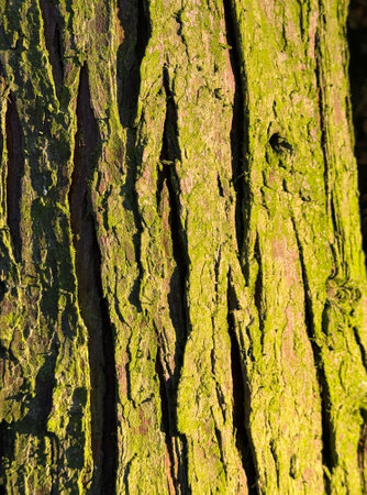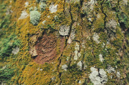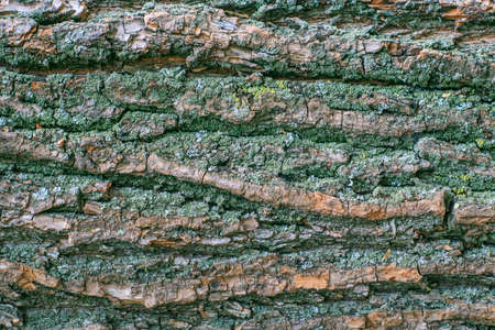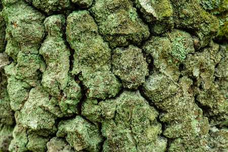 Mossy Texture of oak bark from the Quercus or oak tree as a background. Wooden tree texture. High quality photo