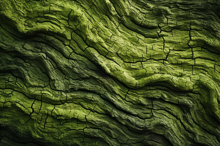 Green tree bark, embossed texture pattern, abstract background.