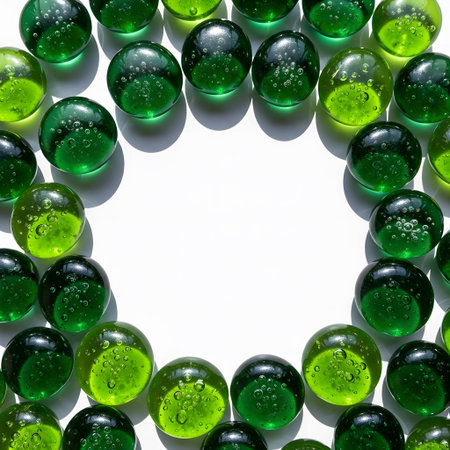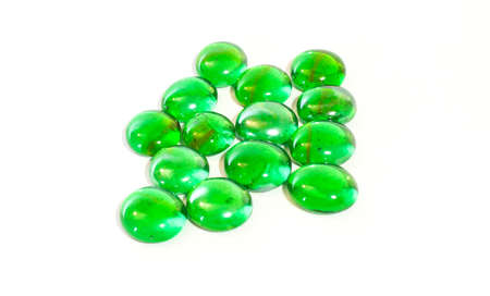 Green glass balls in the form of a circle on a white background