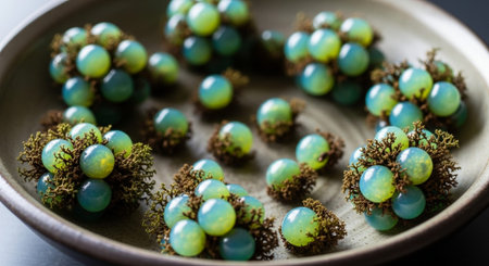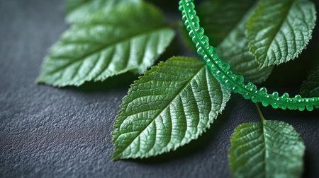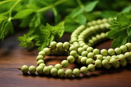 close shot of beads made from tulsi plant, created with generative ai