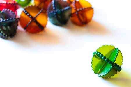 String of beads of green in white background