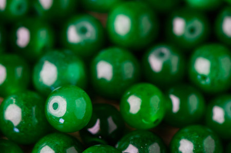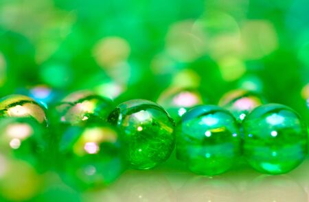 Green beads on a green background, shallow depth of field, selective focus