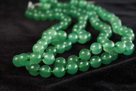A bunch Green jade necklace on the table