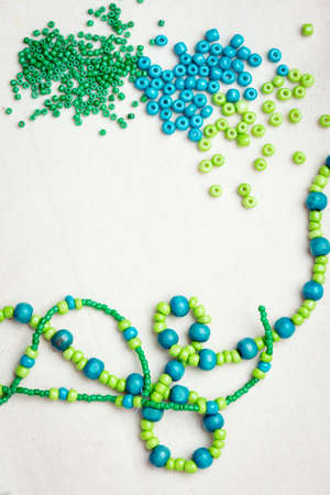 Backgrounds and textures: green beads assortment, abstract background
