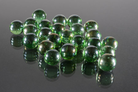 Small Emerald Green Glass Balls with Reflection and Black Background.