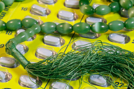 Tasbih (prayer beads) and pharmaceutical drugs.