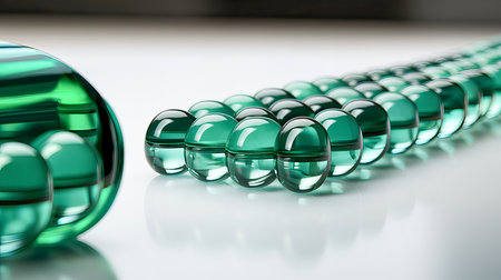 Green capsules in a row on a white background. 3d rendering