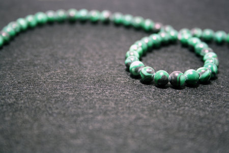 Green malachite necklace on a dark background closeup