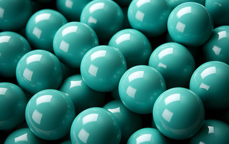 3d rendering of a group of turquoise balls in a row