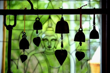 Buddhist bells hanging in temple.