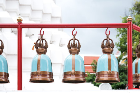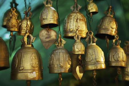 Copper bells in Buddhist place of worship in Phuket