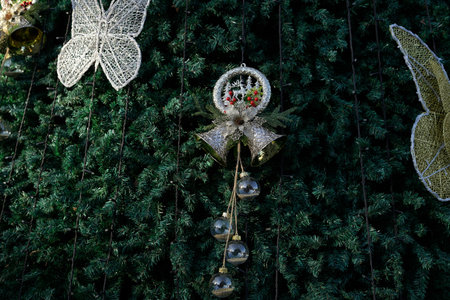 Christmas tree with butterfly and bell ornament decorations