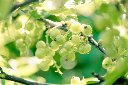 White currant berries in Sunny garden. Growing berries on farm