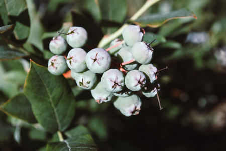 A bunch of bay laurel tree fruits.