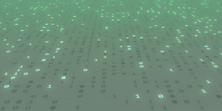 Technology binary code. Random falling green digits on screen. Hacked software. Matrix sciense background. Big data analytics. 3D rendering.