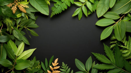 A vibrant composition of green leaves encircling a dark, empty space, perfect for text or design elements.