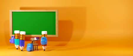 3D Rendering of pencils carry bag to go to school, represents academic success on light orange background. Realistic 3d shapes. Education concept.