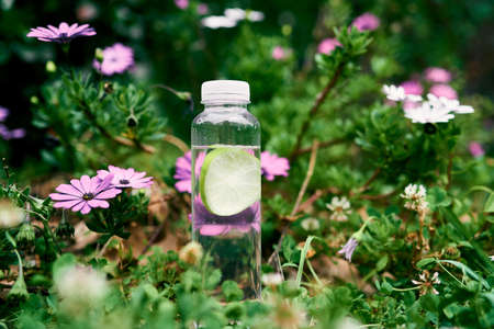 A bottle of clean water in a natural environment. The concept of pure natural mountain water