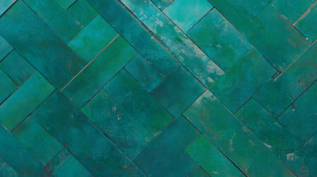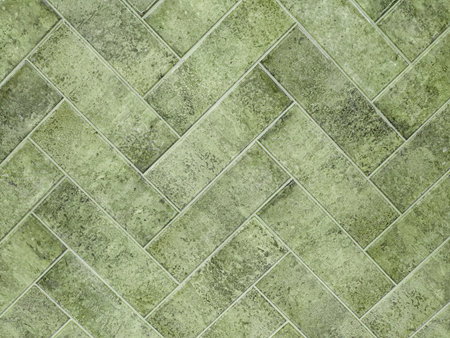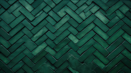 Perspective panorama of green brick in a herringbone pattern, creative copy space, horizontal aspect