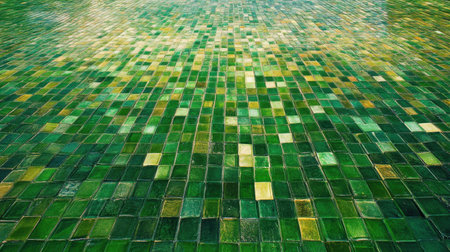 A captivating view of lush green mosaic tiles arranged in a vibrant pattern, perfect for use in various decorative projects and inspiring design concepts.