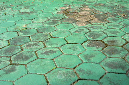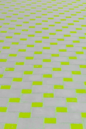 Light green and gray color bright floor tile stone texture surface street city background paving.