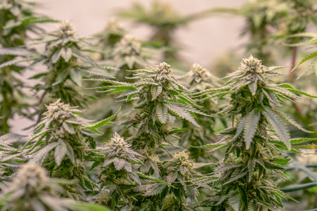 Indoor Marijuana grow medical. Green sativa background. Weed pot plant.