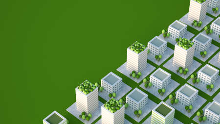 Green city concept with skyscrapers and green trees. 3d rendering
