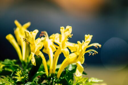 Venous Pyrostegy. Orange Trumpet blooming in garden.