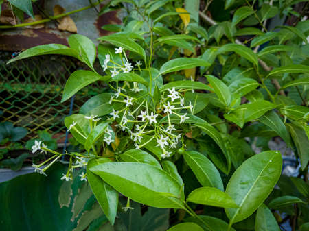 Stephanotis or Madagascar jasmine blooming with withe odorous flowers
