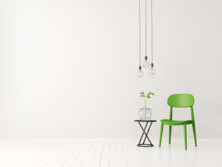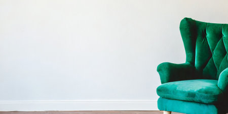 Elegant dark green chair in a light room. Blank Wall for Mockup Templates