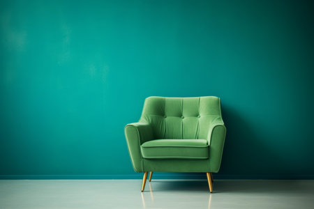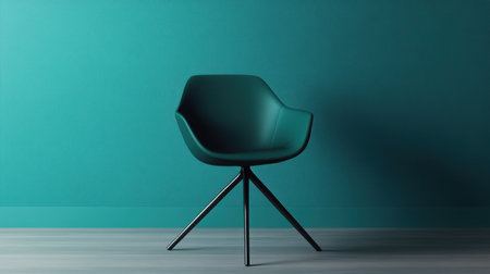 A modern teal chair stands elegantly against a minimalistic wall, offering an ideal blend of style and comfort for contemporary living space decor.