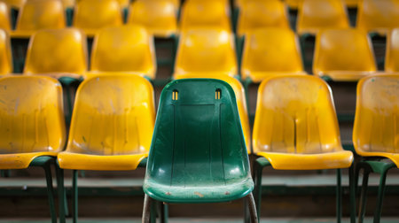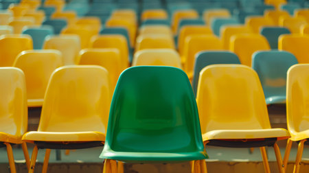 Close up image of stadium seats, capturing sports venue, seating arrangement, and event atmosphere.