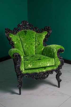 pulled back green velvet cutting edge chair. Creative resource, AI Generated
