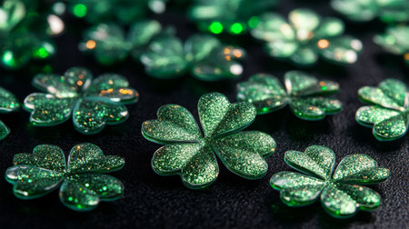 A vibrant green shamrock and a golden tag reading Lucky rest on a dark surface, showcasing a festive theme. This scene captures the spirit of good fortune and celebration.