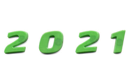 Year 2021 label written with magnetic letters