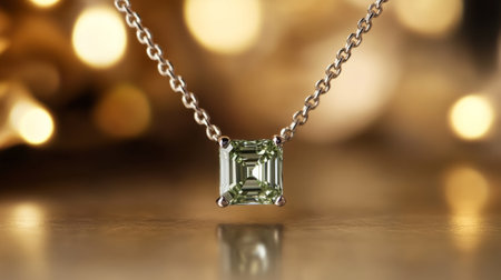 Delicate necklace design, diamond stone, a rectangular green diamond generative ai