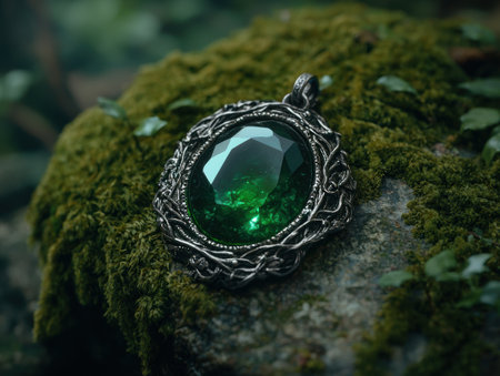 Enchanting emerald pendant in ornate silver setting