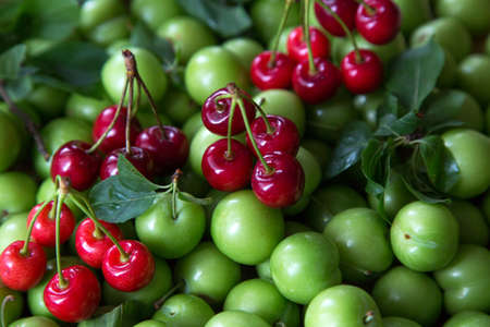 summer fruits, green plums and cherries