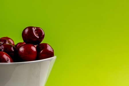 close-up of a lot of ripe cherries, unusual color lime. beautiful bright green background.