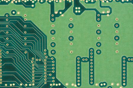 Green Computer circuit board close up for background.
